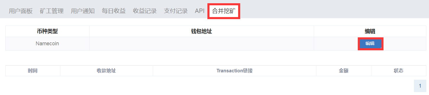 마찬가지로 LTC 코인일 경우, “합병채굴” 페이지로 이동하여 도지코인의 지갑주소를 설정합니다. 주의:네임코인의 주소를 설정하지 않는 광부는 네임코인의 보상을 방치하는 것으로 간주합니다.