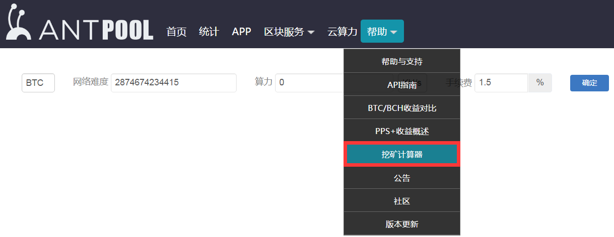 도움말 - 채굴 계산기를 클릭하고 코인 종류를 전환하고 계산력, 채굴 요율을 입력하면 수익을 계산할 수 있습니다.